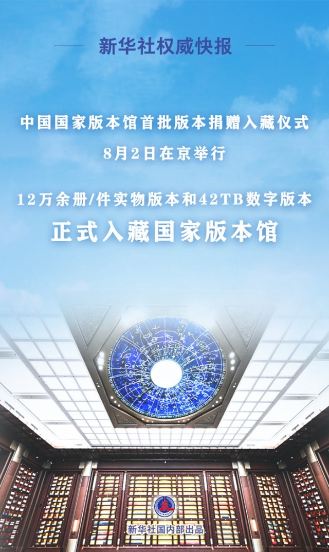 中国国家版本馆首批版本捐赠入藏仪式8月2日在京举行
