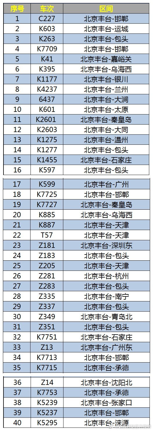 4日北京西站、北京丰台站部分列车停运,车次查询