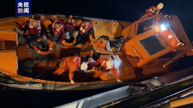 10月8日晚,一艘满载砂石的散货船在长江口海域严重倾斜进水,随时可能沉没,13名船员急需救援。交通运输部东海救助局专业救助力量及时出动,13名船员全部获救。