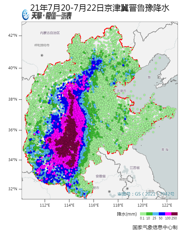 2021年7月20日至7月22日京津冀晋鲁豫降水