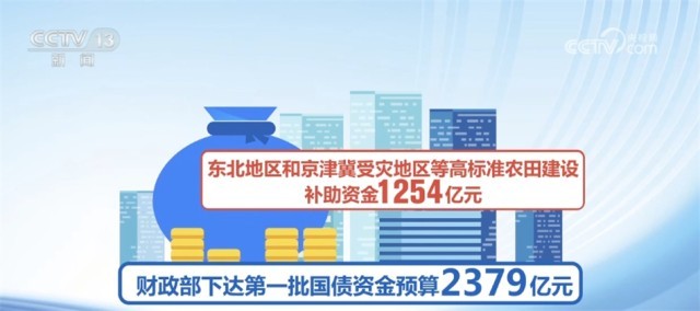 据介绍,根据工作机制确定的第一批2900多个项目,财政部已经下达第一批国债资金预算2379亿元,其中,灾后恢复重建和提升防灾减灾能力补助资金1075亿元、东北地区和京津冀受灾地区等高标准农田建设补助资金1254亿元、重点自然灾害综合防治体系建设工程补助资金(气象基础设施项目建设)50亿元。