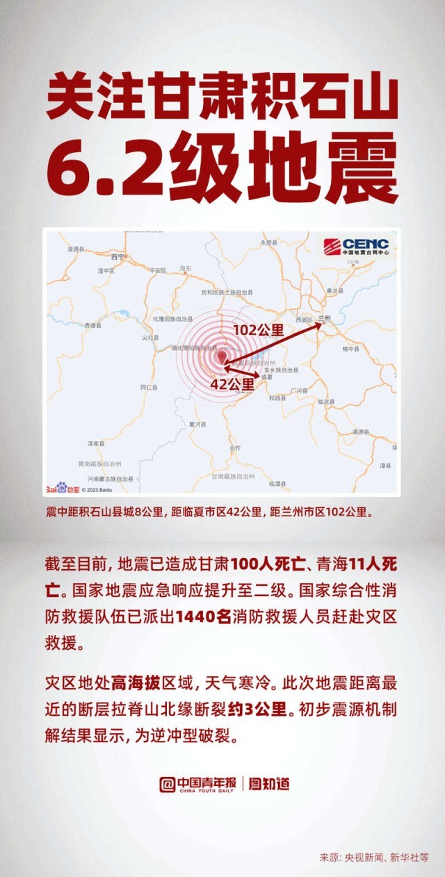 图知道|关注甘肃积石山6.2级地震:已造成至少111人死亡,救援进行中