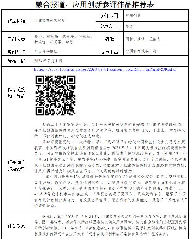 中国青年报社推荐参评第34届中国新闻奖融合报道、应用创新和新媒体新闻专栏作品专项初评公示