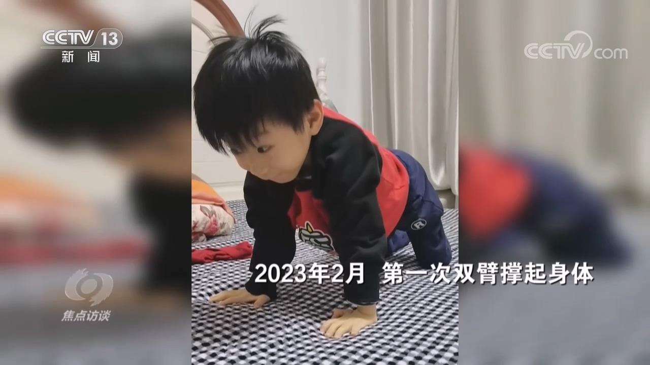 小石头的爸爸马恒祥:“6个月之前发育都很正常,像抬头、翻身、坐都没有问题,但是在8个月左右的时候,发现他的腿在躺着的时候不会动了,坐也坐不住了。”