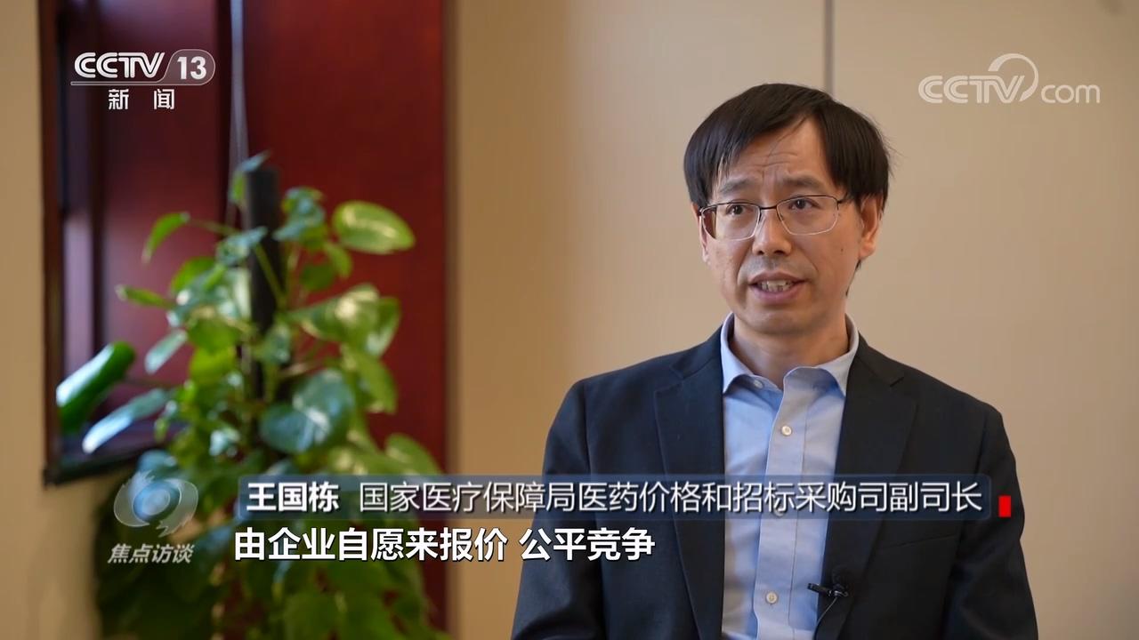 国家医疗保障局医药价格和招标采购司副司长王国栋:“我们把全国公立医院的采购量汇集起来,作为一个整体,作为一个标的,由企业自愿来报价、公平竞争,企业不需要通过营销、公关,直接带量进医院,医院和企业签订采购合同,确保中选产品的使用。”