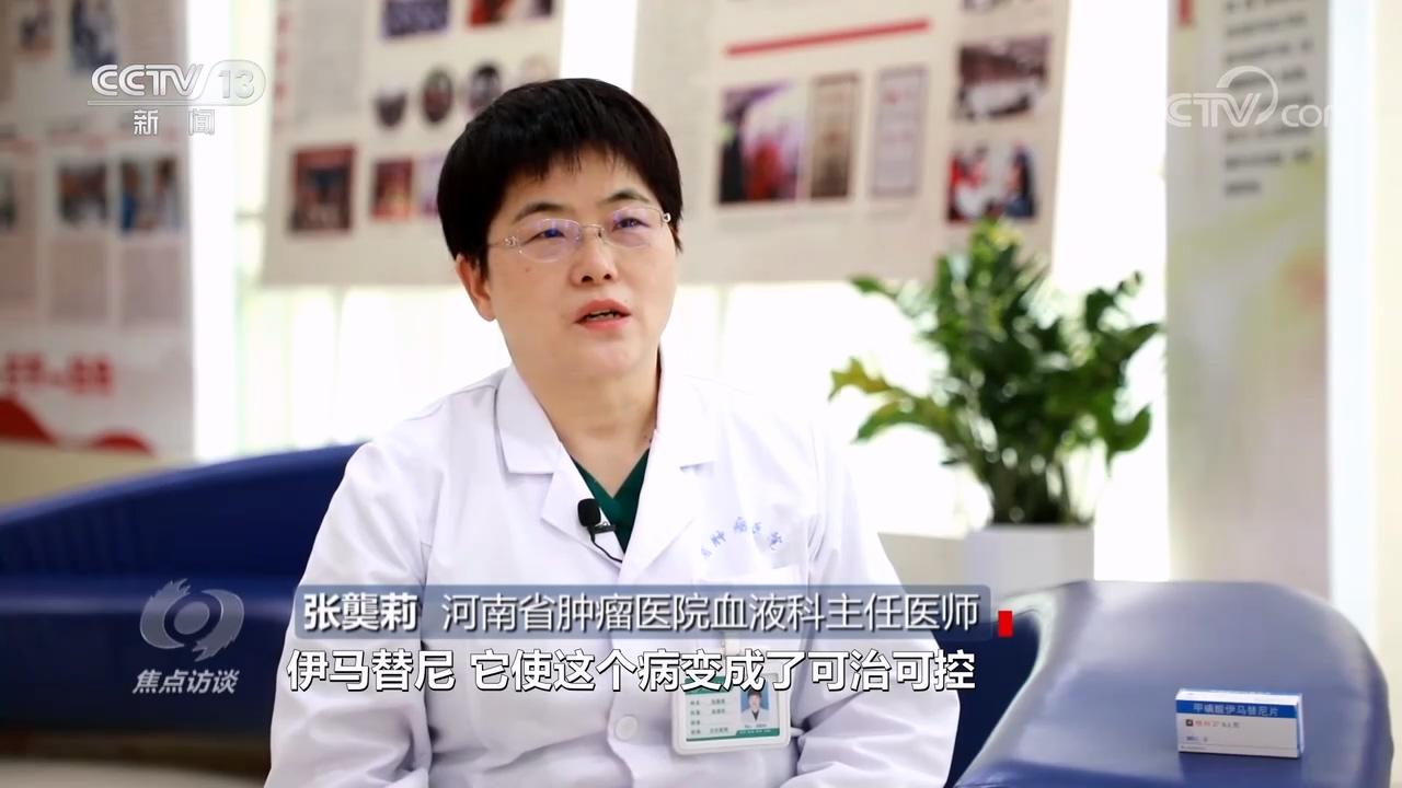 河南省肿瘤医院血液科主任医师张龑莉:“伊马替尼,使这个病变成了可治可控,但是需要长期服用。最初伊马替尼原研药“格列卫”,患者一个月2盒需要24000元。”