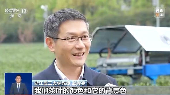 浙江理工大学教授 武传宇:那么这个最大的问题是在于,我们茶叶的颜色和它的背景色几乎是一样的,它没有明显区分。另外一个的话呢,这个目标是非常小的,我们最小的采摘的一个点的话呢,只有2个毫米左右。还有一个的话呢,我们茶园的这个绿地,有可能在山坡上,在平整地上的相对会少一些。