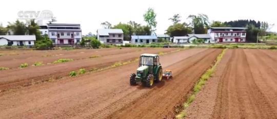 4月14日,在重庆市潼南区柏梓镇郭坡村,一辆一体化精量植播机在农机手熟练操控下作业,旋耕、播种、覆土、镇压一次完成。