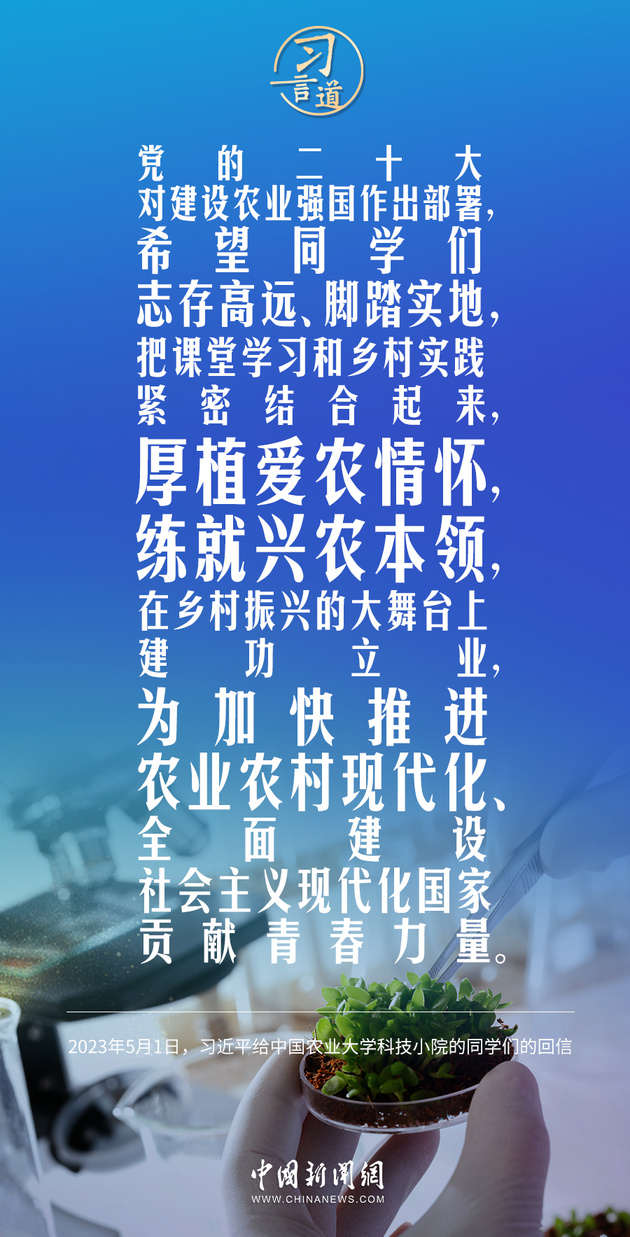 5月1日,中共中央总书记、国家主席、中央军委主席习近平在给中国农业大学科技小院同学们的回信中指出——