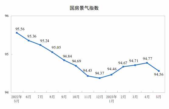 5月份,房地产开发景气指数(简称“国房景气指数”)为94.56。