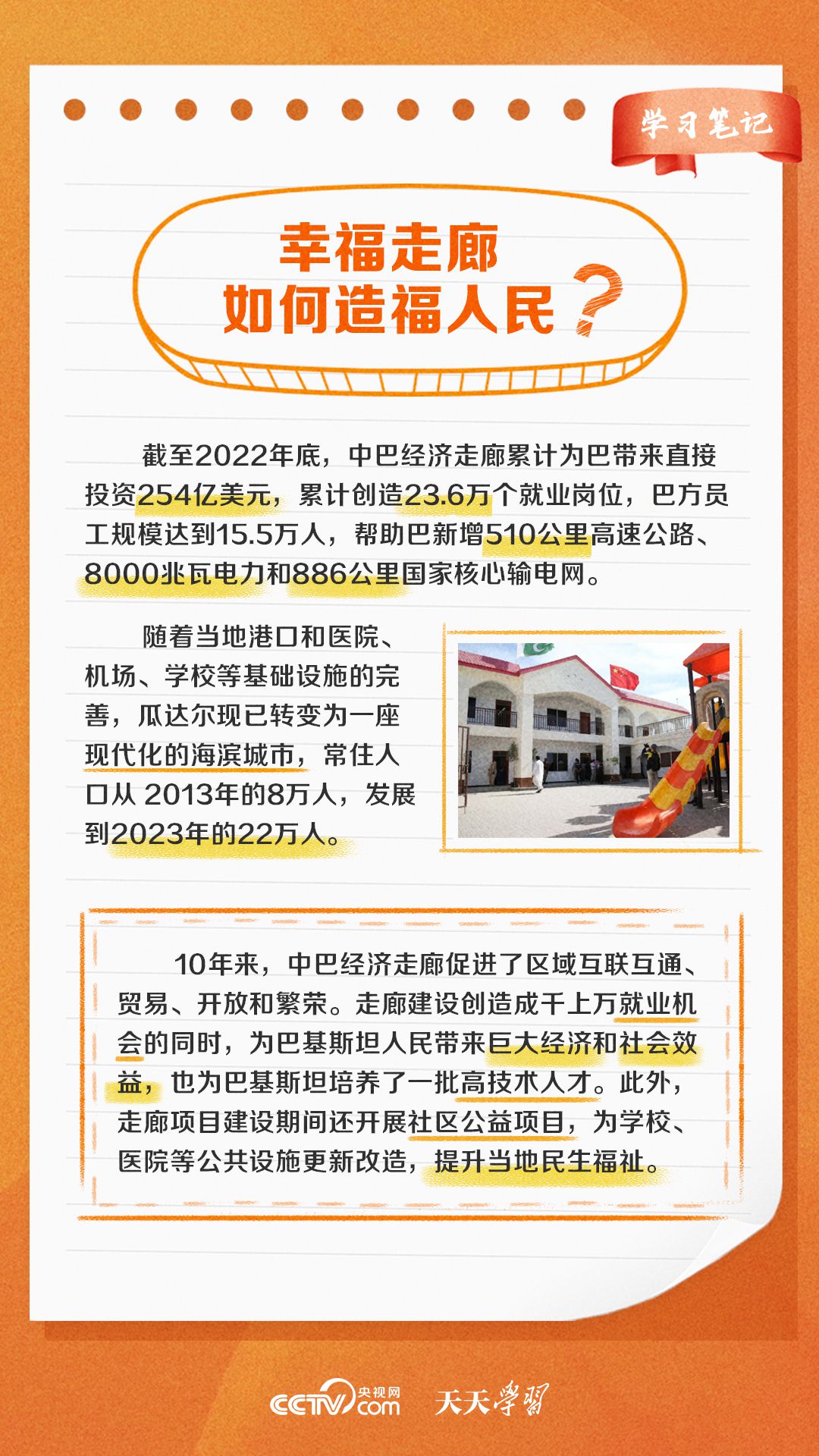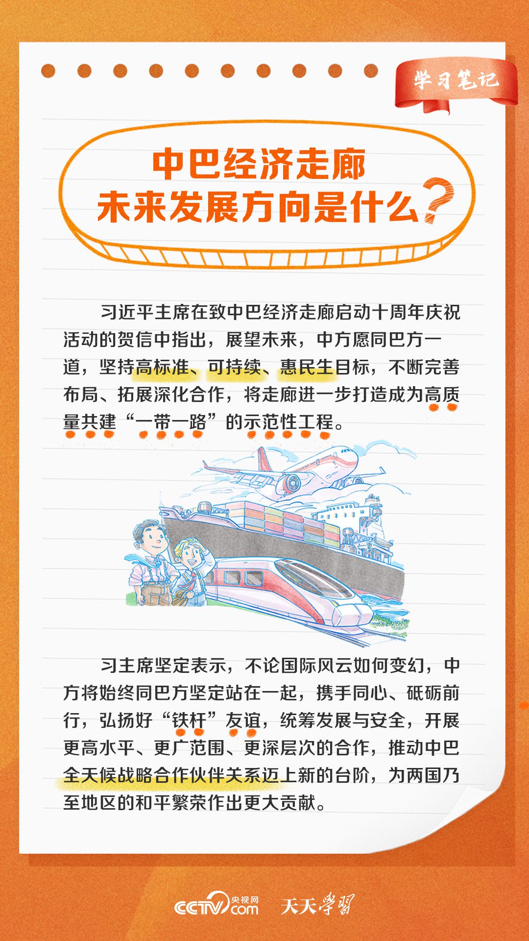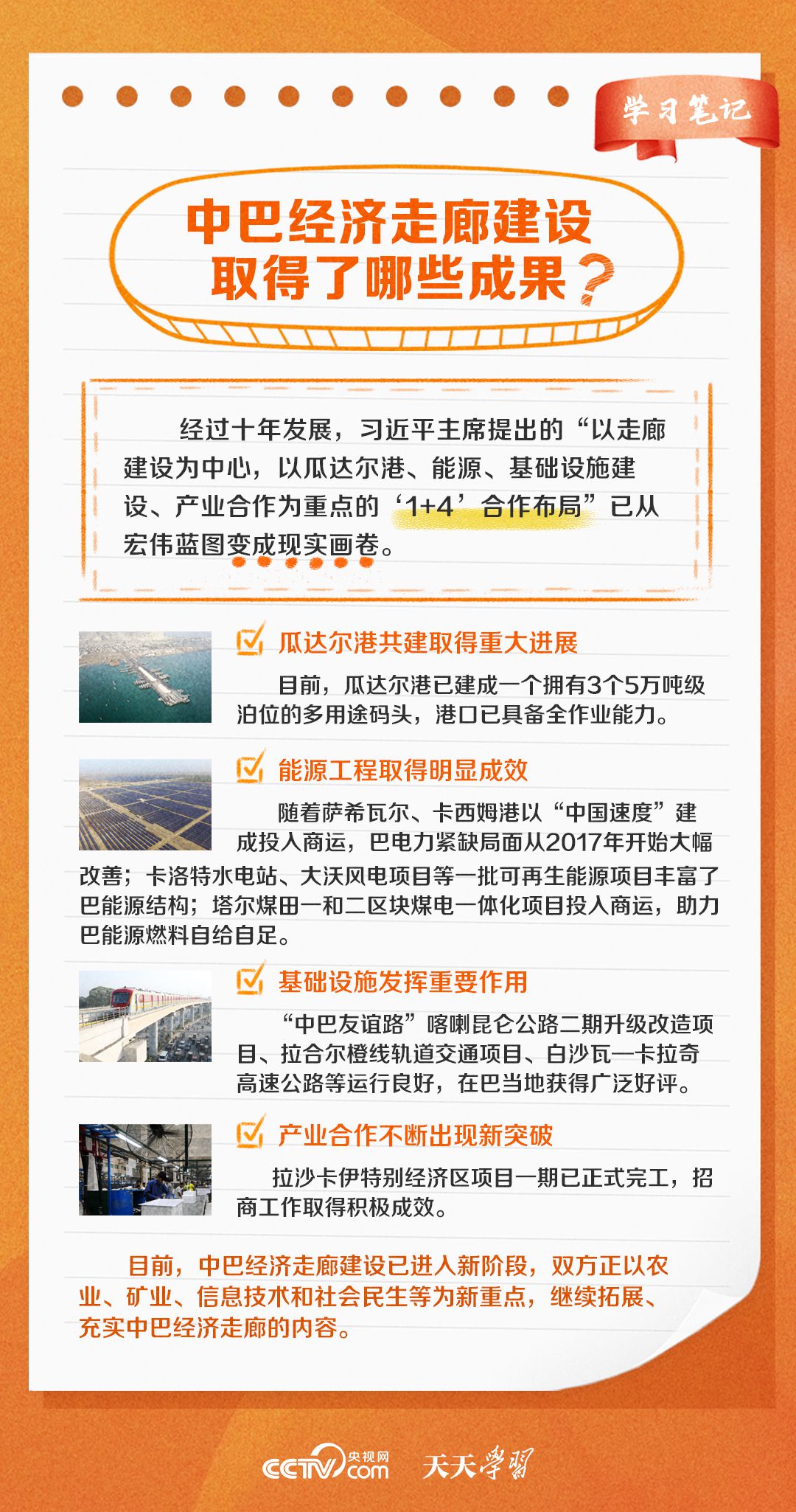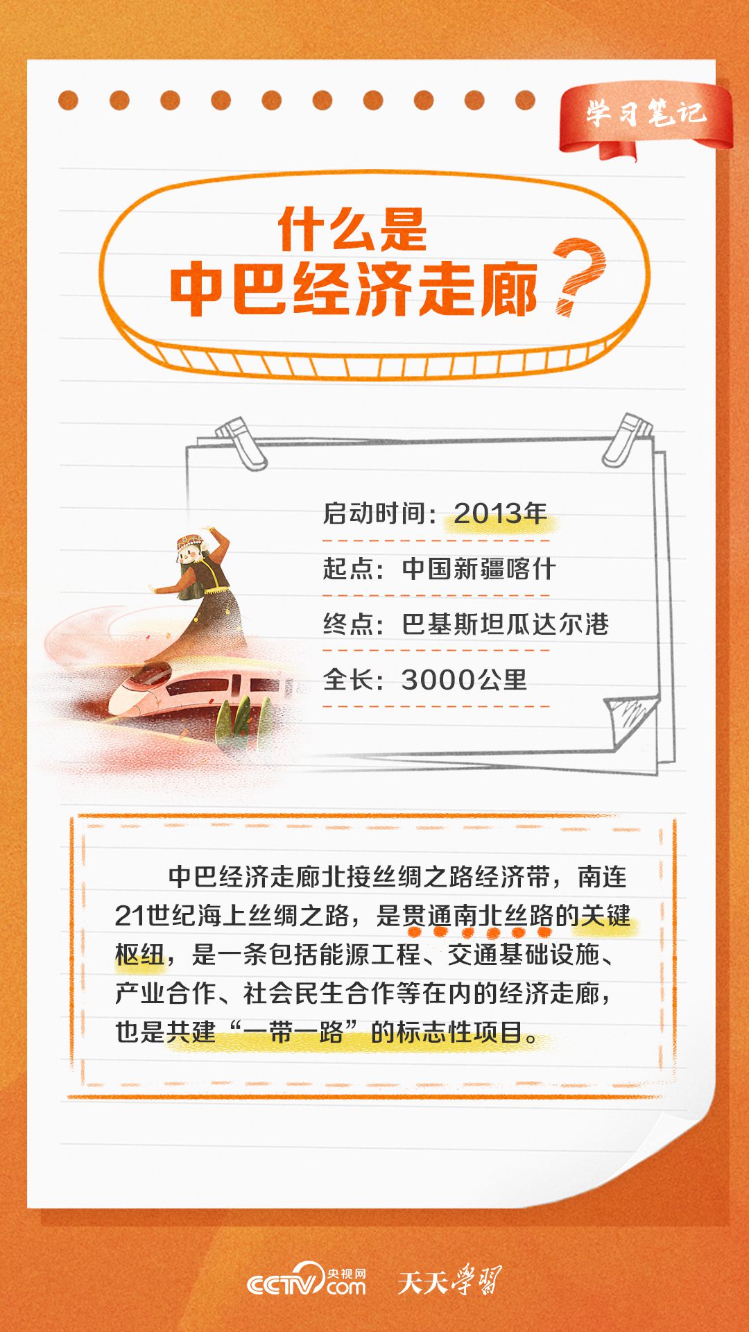 今年是习近平主席提出共建“一带一路”倡议十周年,也是中巴经济走廊启动十周年。经过十年的发展,中巴经济走廊已成为中巴友谊“新标杆”。央视网《天天学习·学习笔记》特梳理中巴经济走廊相关知识点,与您一起学习。