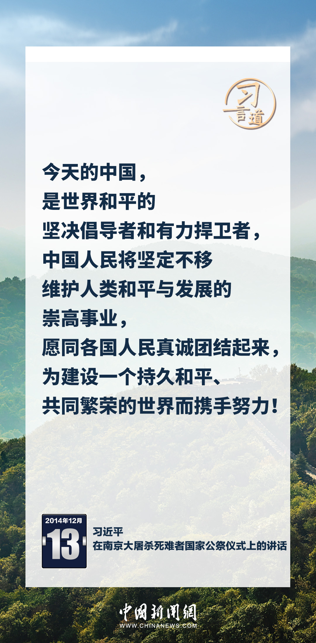 前事不忘,后事之师。2023年12月13日是第十个南京大屠杀死难者国家公祭日。让我们一起重温习近平总书记的重要讲话,缅怀逝者,坚定维护和平的决心,以史为鉴,照亮未来前进的道路。