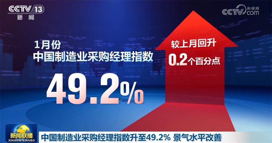 中国物流与采购联合会、国家统计局服务业调查中心1月31日公布,1月份中国制造业采购经理指数为49.2%,较上月回升0.2个百分点,结束了连续3个月下降势头,景气水平有所改善。