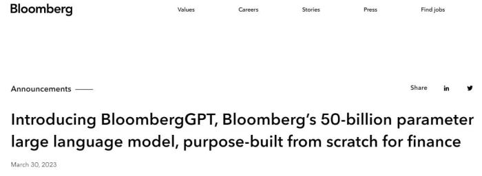 彭博针对金融业推出大型语言模型BloombergGPT
