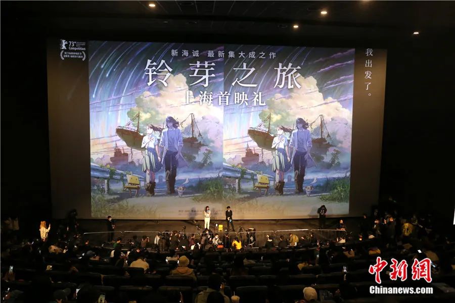 导演新海诚携最新电影《铃芽之旅》在上海万达影城举行首映式。陈玉宇 摄
