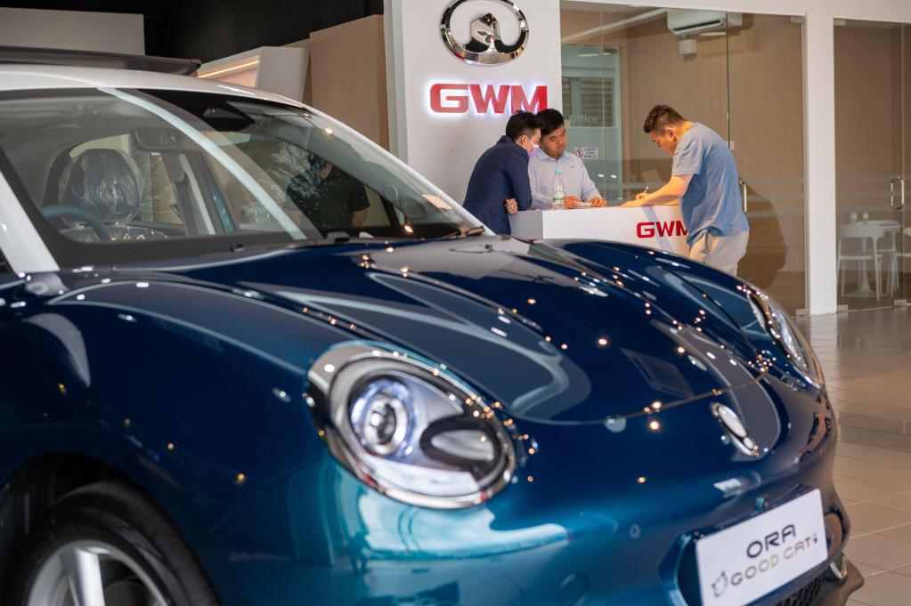 2月17日,在马来西亚吉隆坡,一名顾客准备试驾中国长城汽车旗下的欧拉好猫新能源汽车。