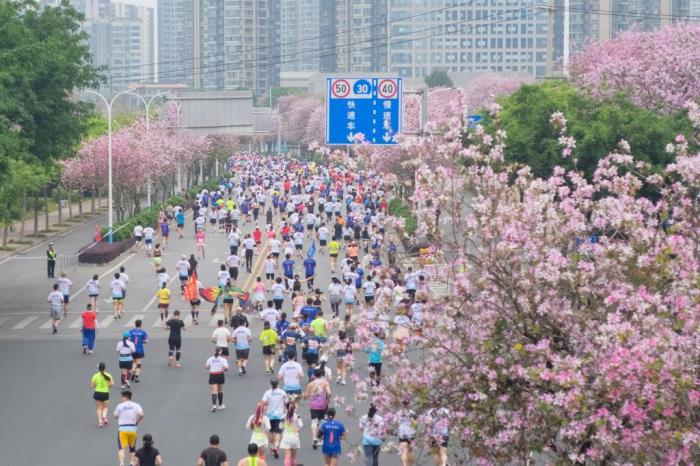 趁着柳州最美时节,2023柳州马拉松暨警察马拉松4月9日开跑。该市独特的洋紫荆盛开路段串联成马拉松赛道,参赛选手们一边尽情奔跑,一边领略城市独特风景。该次比赛吸引中国各地2万人汇聚柳州,亦促进当地经济发展。