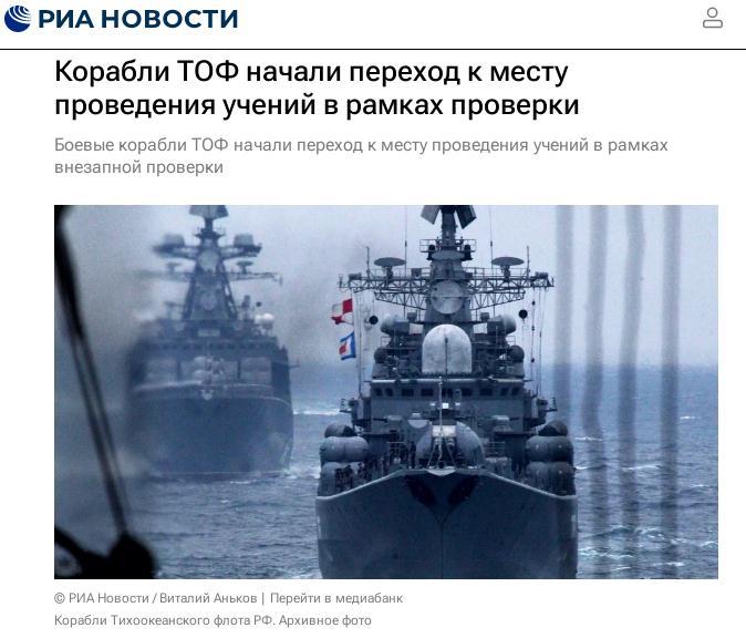 俄联邦武装力量总参谋长格拉西莫夫介绍,太平洋舰队的战备突击检查将分三个阶段进行。在第一阶段,舰队将进入全面战斗准备状态;在第二阶段,部队将从常驻基地部署到作战训练区域;在第三阶段,将根据行动计划执行作战训练任务。