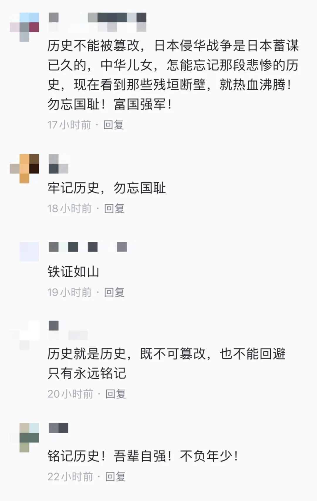 历史从未遗忘!总台央视新闻播发两条短视频《日本侵华独家影像披露丨“七七事变”后的宛平城影像 揭露日军宣传谎言》《日本侵华独家影像披露②丨清河车站运兵视频 揭露日军侵略野心》后,各大新媒体均在首页四条置顶转发。网民纷纷留言:“国耻不能忘,复兴在今朝!”“忘记历史就是背叛”“警惕日本军国主义阴魂!”……