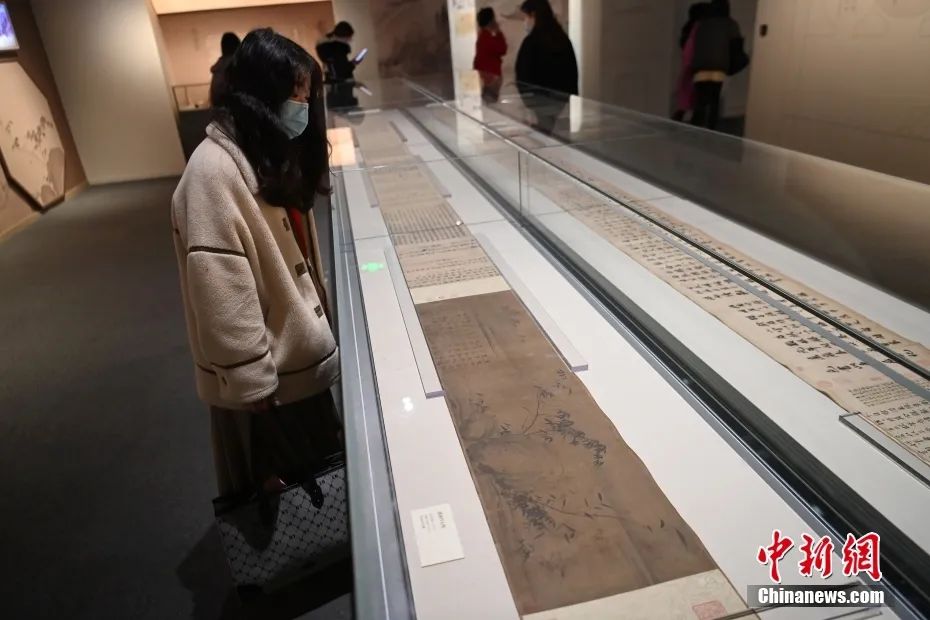 2023年1月16日,四川成都,四川博物院跨年大展“高山仰止回望东坡——苏轼主题文物特展”迎来文物上新,《潇湘竹石图》《洞庭春色赋·中山松醪赋卷》《阳羡帖》手卷三件苏轼真迹齐聚。图为中国美术馆藏苏轼《潇湘竹石图》。中新社记者 安源 摄