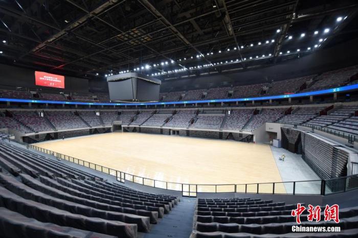 资料图:图为工作人员在东安湖体育公园的多功能体育馆内忙碌。 中新社记者 张浪 摄