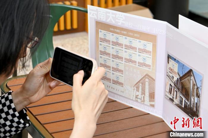 图为当天发行的《云南大学建校一百周年》纪念邮票 李嘉娴 摄