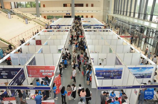 4月22日,在位于越南首都河内的国家会议中心,留学咨询者络绎不绝。新华社记者 陶军 摄