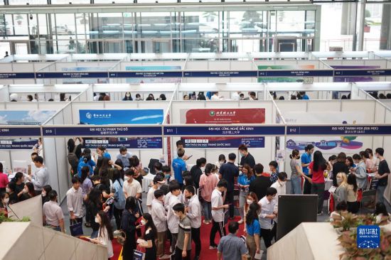 4月22日,在位于越南首都河内的国家会议中心,留学咨询者络绎不绝。新华社记者 胡佳丽 摄