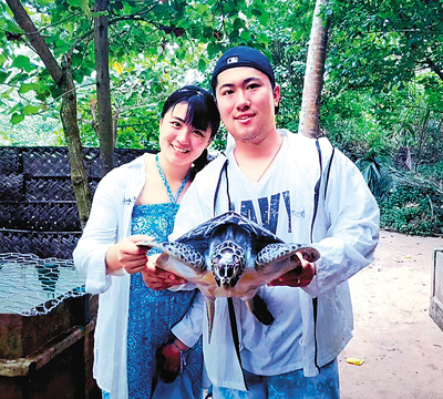 许振轩(右)与李丹宜在斯里兰卡体验了一场特殊的“海龟保育义工之旅”。