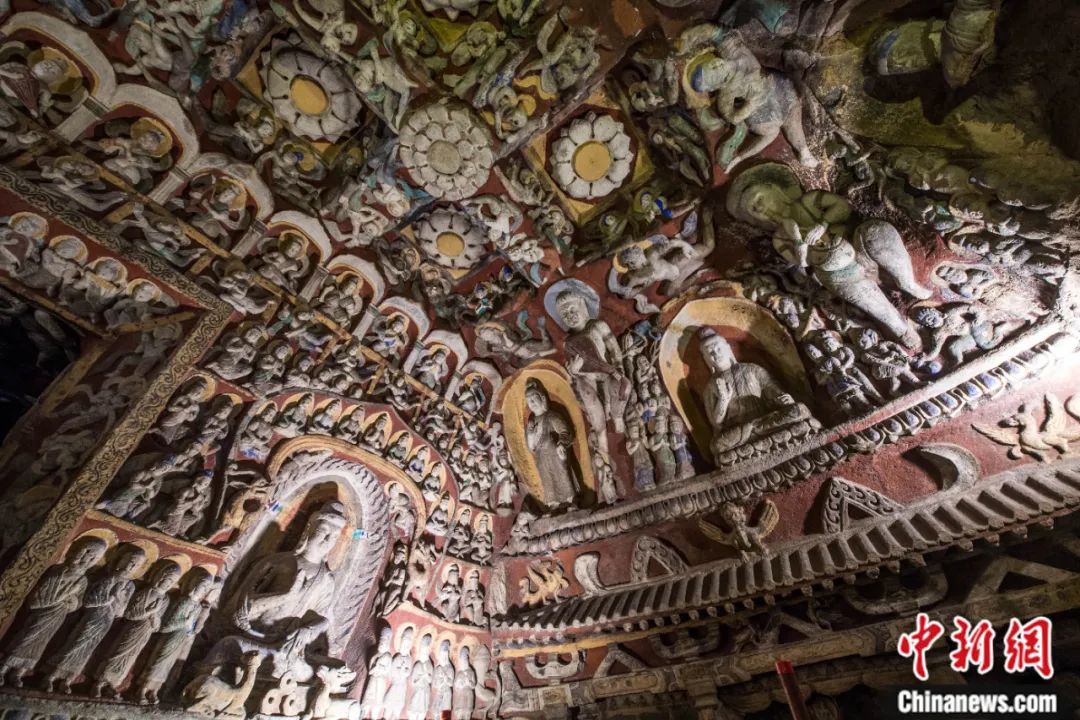 云冈石窟第12窟又名“音乐窟”,前殿上壁雕塑的数十身伎乐天人形象正在演奏琵琶、筚篥、古琴等各种中西式乐器,是中国古代最早的宫廷交响乐团。武俊杰 摄
