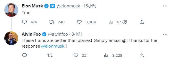 推特网友赞中国高铁“舒适宽敞快速准时” 马斯克:是真的!