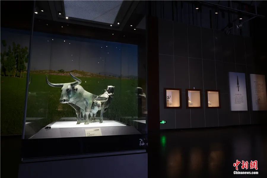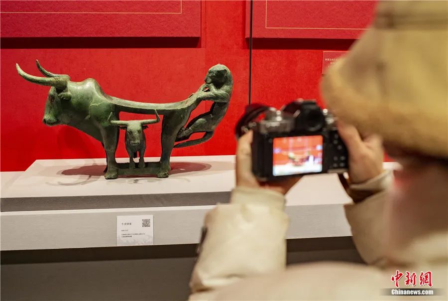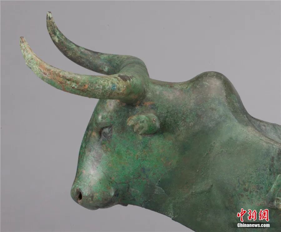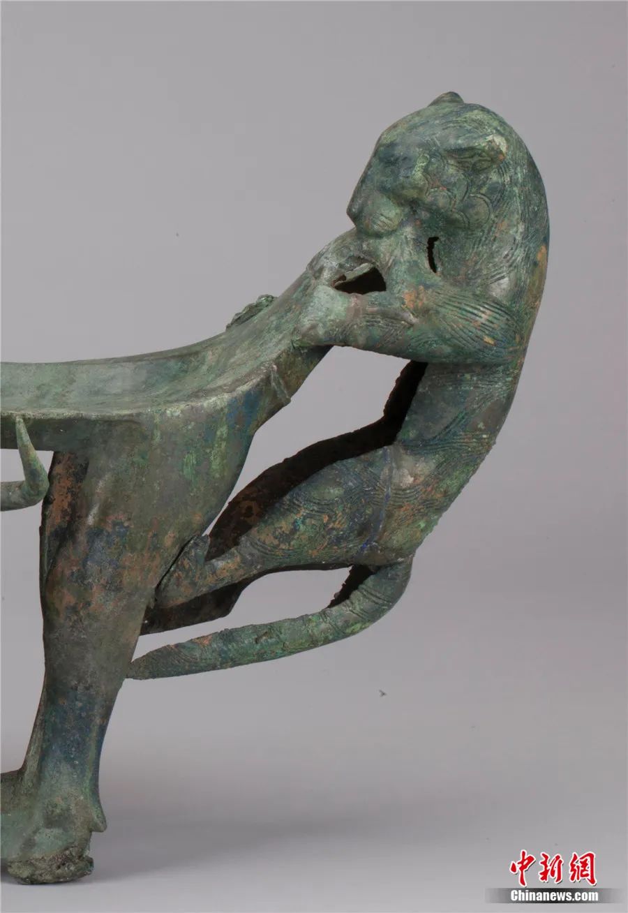 此外,还有专家延伸解读:在古滇国,虎为百兽之王,象征权威,牛则是财富和生命的标志。牛虎铜案中的虎、牛形象成为滇人重点表达的主题,显示了滇人崇虎、崇牛之情,表达了对权力、财富和生命的向往。