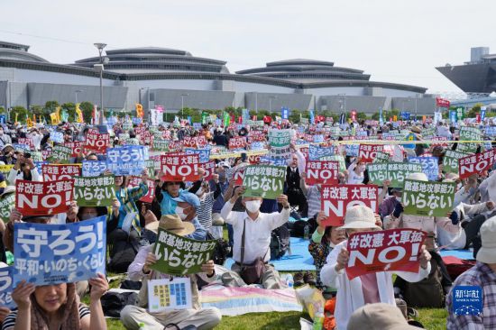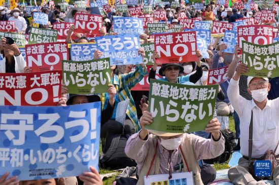 5月3日是日本宪法纪念日。当天,约2.5万名日本民众聚集在东京有明防灾公园的广场上,举行了守护宪法集会,他们打出守护宪法、反对强军扩武、不要反击能力、反对修改宪法等内容的标语和旗帜,呼吁守护宪法、守护和平。