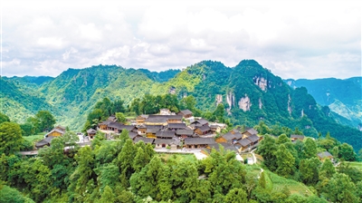 鸟瞰湖南省湘西土家族苗族自治州花垣县十八洞村梨子寨风光。