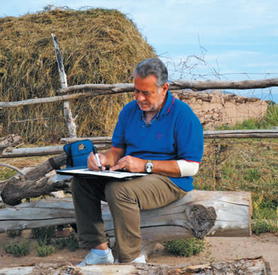 艾哈迈德·纳瓦尔在新疆写生。
