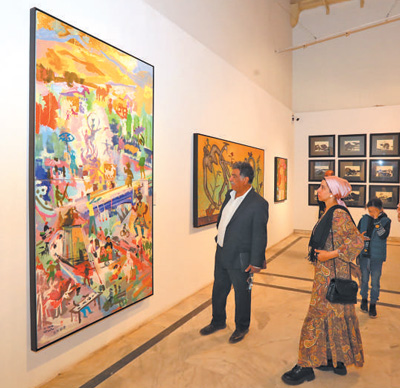 人们在埃及首都开罗参观“艺汇丝路——中阿知名艺术家采风作品展”。