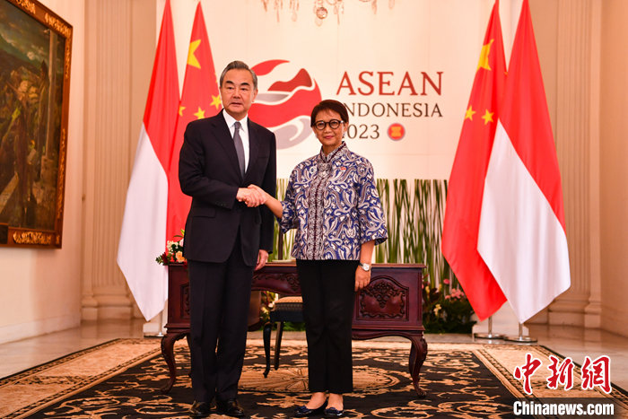 中新社雅加达7月12日电 (记者 李志全)当地时间7月12日,中央外办主任王毅在雅加达会见印尼外长蕾特诺。