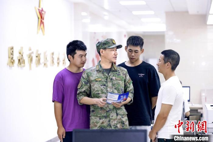 陈刚果在恩施市征兵服务站与应征青年交谈。粟毅 摄
