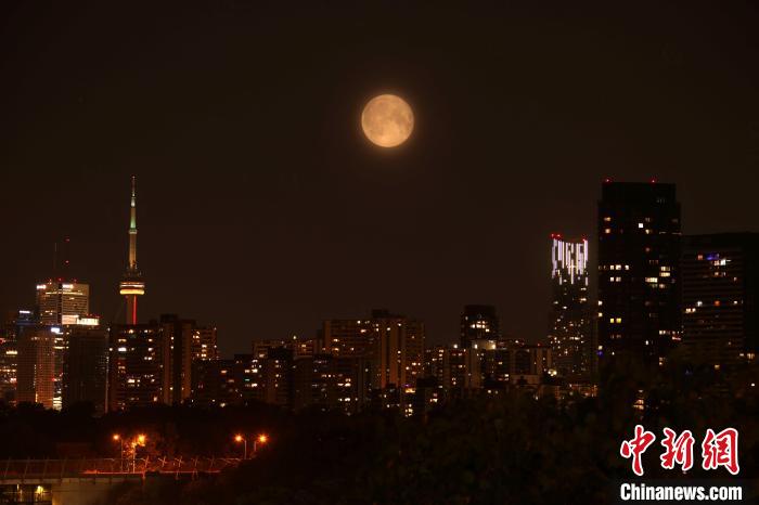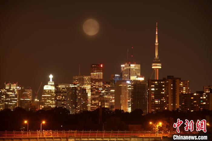 加拿大多伦多迎来2023年首次“超级月亮”-中新网