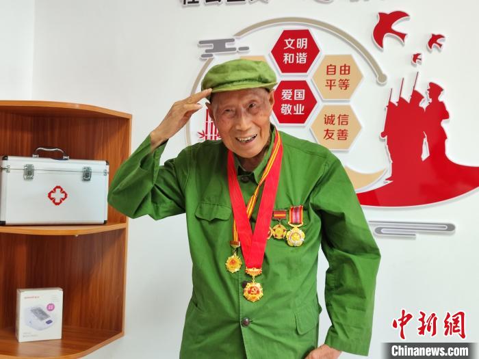 中新网赣州8月1日电 (熊锦阳)整理好军装,佩戴上勋章,8月1日清晨,老兵王益民就已洗漱完毕,对他而言,今天是一个重要的日子。早上6点15分,通过直播,王益民聚精会神地观看着南昌八一广场上举行的升旗仪式,随着五星红旗缓缓升起,这位93岁的抗美援朝老兵迅速立正抬手,向着鲜艳的国旗做了一个标准的军礼……