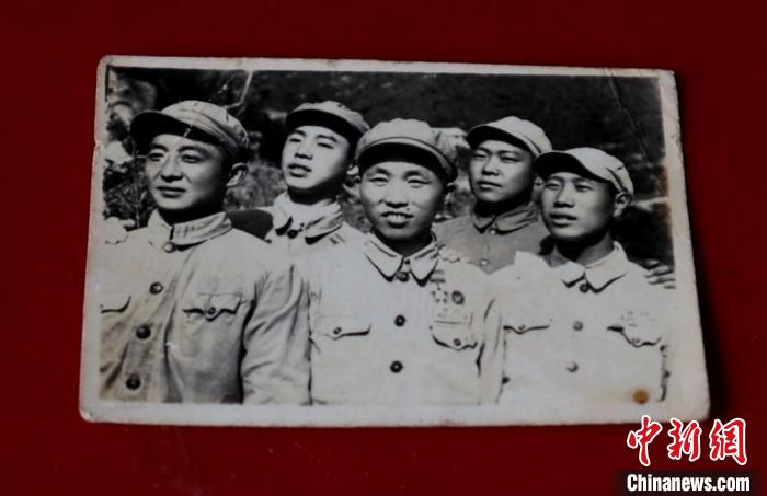 王益民(右一)和战友们的合影。 尹才霞 摄