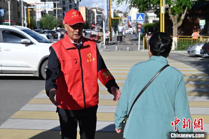 图为彭措在共和县城当志愿者。武俊杰 摄