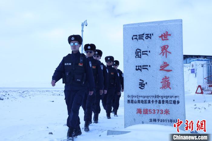 图为袁浩杰与战友在海拔5373米的普玛江塘边境派出所巡逻。山南边境管理支队供图