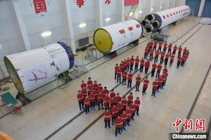 长征四号丙运载火箭研制历程,研制团队站成数字100的队形。(中国航天科技集团有限公司八院供图)