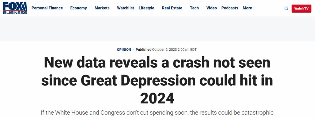 报道中写道,越来越多的数据表明,一场破坏性超过大萧条的经济崩盘可能即将在2024年降临美国。白宫和国会如果不尽快削减政府支出,结果可能是灾难性的。