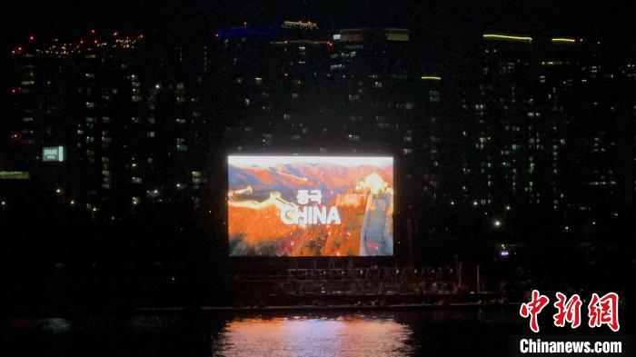 图为庆典中播放中国主题宣传片。中新社记者 刘旭 摄