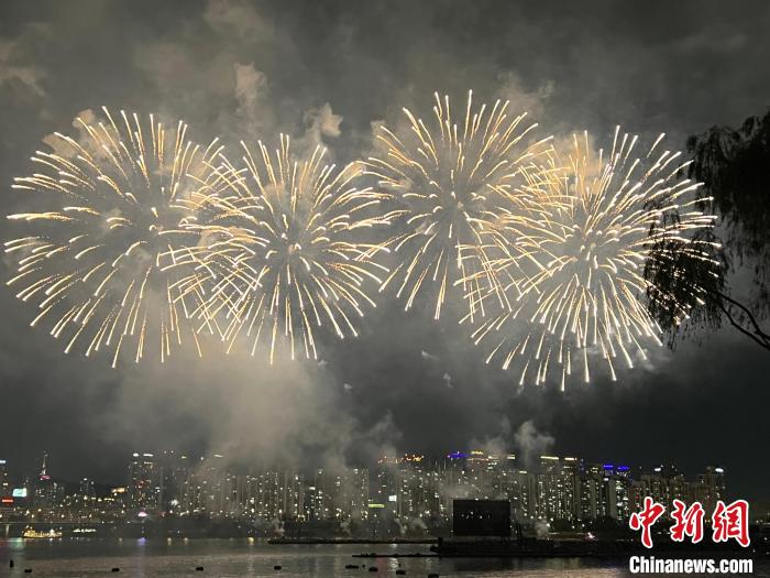 19时20分许,烟花随着主持人的倒计时口令相继绽放,拉开烟花秀表演的序幕。
