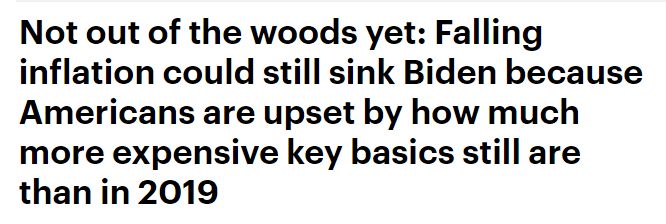 报道援引美国数字新闻网站(Axios)的民调称,美国民众对本国经济的看法十分糟糕。这其中很重要的原因就是,民众在日常生活中更关注所需商品的绝对价格,而这一价格目前依然过高。尽管近期美国通胀率有所下降,但商品价格还在上涨,只是比以前稍慢了一些。