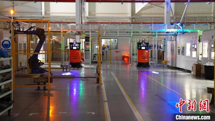 中新社记者近日探访位于浙江嘉兴的敏实集团,在其未来工厂里,机器人于“熄灯车间”来回穿梭。 中新社记者 杨程晨 摄