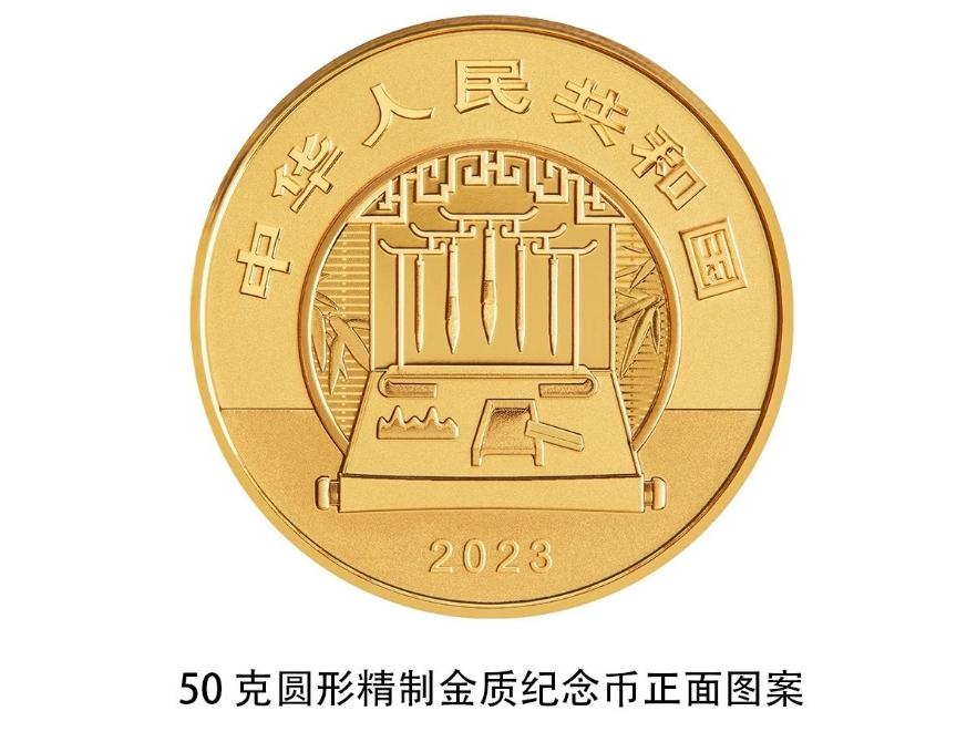 50克圆形金质纪念币为精制币,含纯金50克,直径40毫米,面额800元,成色99.9%,最大发行量1000枚。